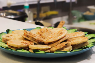 相較於先前的場次,火鍋是手續沒那麼繁複的餐品,將湯和肉燉好,就只剩下讓食客現煮的菜需要切洗備好、擺盤。因此,為了讓餐點看起來更豐富,我們多準備了小菜糖醋黃瓜。原本自以為是地認為外面的小黃瓜邊緣歪七扭八,自己一刀一刀慢慢切的工整美觀,卻難以入味,十分清淡,才了解到,外面用刀面拍碎小黃瓜是有道理的。下次也許可以多思考料理的外觀是為什麼,感覺會挺有趣的。